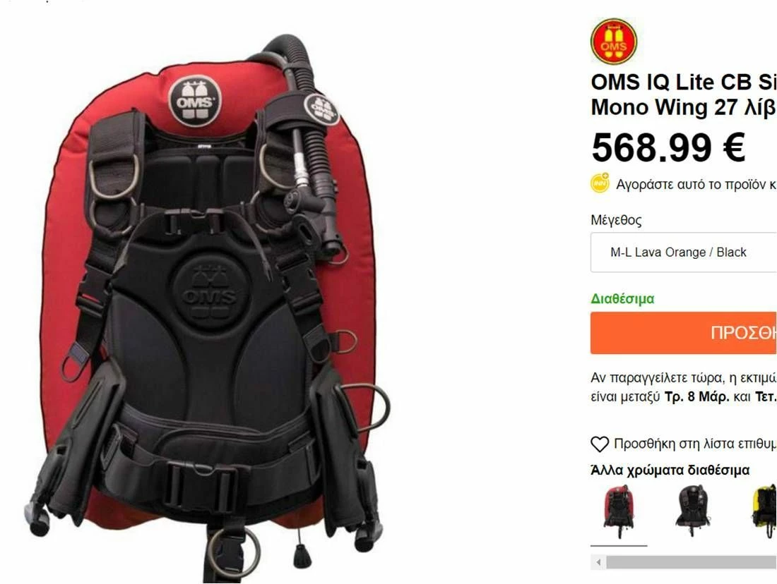 BCD OMS IQ Lite CB Signature With Performance Mono Wing 27 Lbs με Backplate και θήκες , μέγεθος XL
