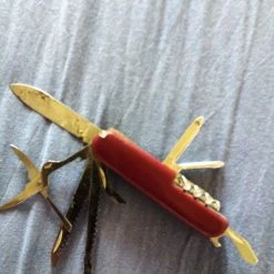 Έχει ψαλίδι, 2 πριόνια, λίμα, τσιμπιδακι, μαχαίρι, 2 ανοιχτειρια, κατσαβίδι, σταυροκατσαβιδο, μαχαιράκι,και άλλα