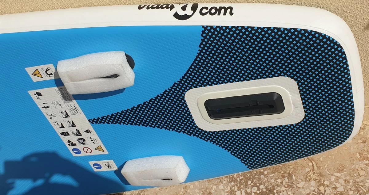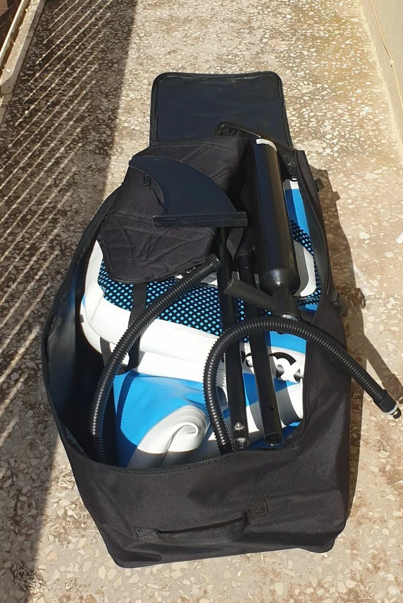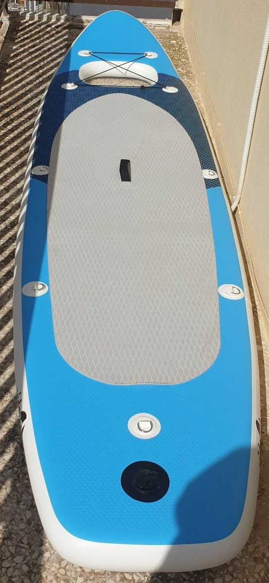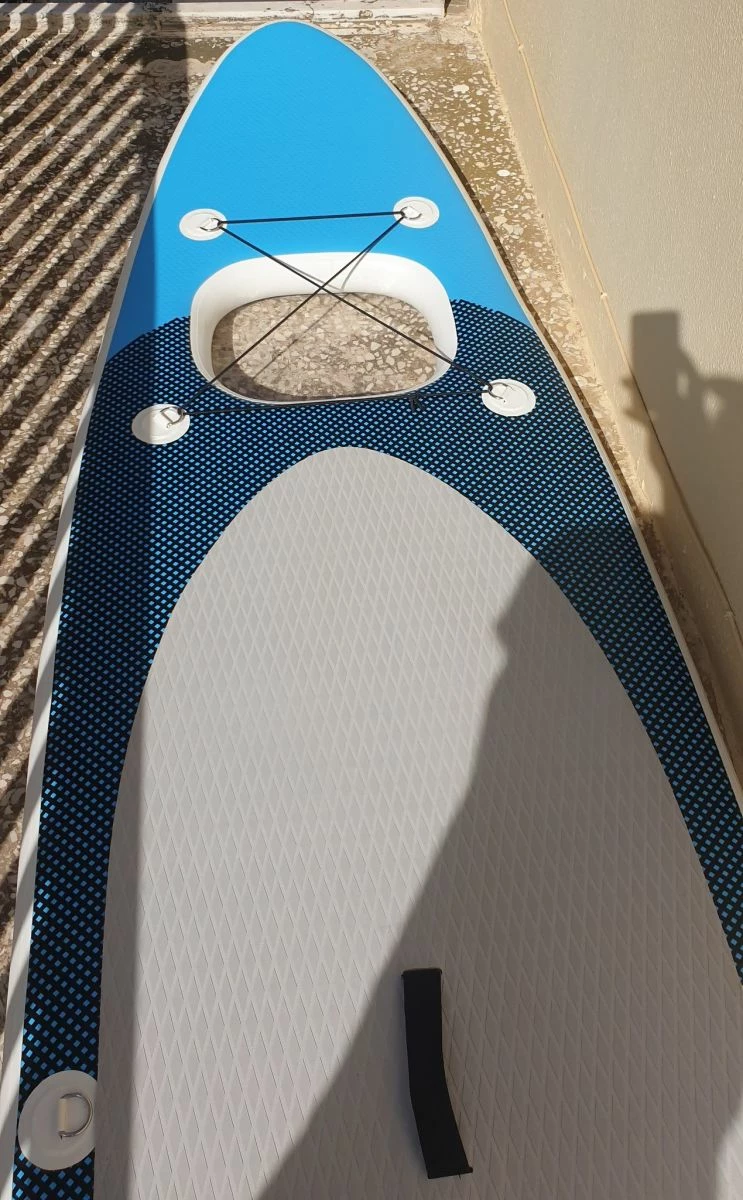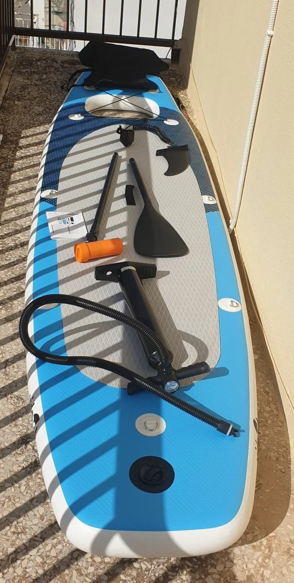 Φουσκωτή σανίδα SUP Πωλείται 200 Ευρώ. Μήκος 3,6 μέτρα, συσκευασμένο 14 κιλά. Κατάσταση σαν καινούργιο. Χρησιμοποιήθηκε για δοκιμαστική εμπειρία μόνο 2 φορές.