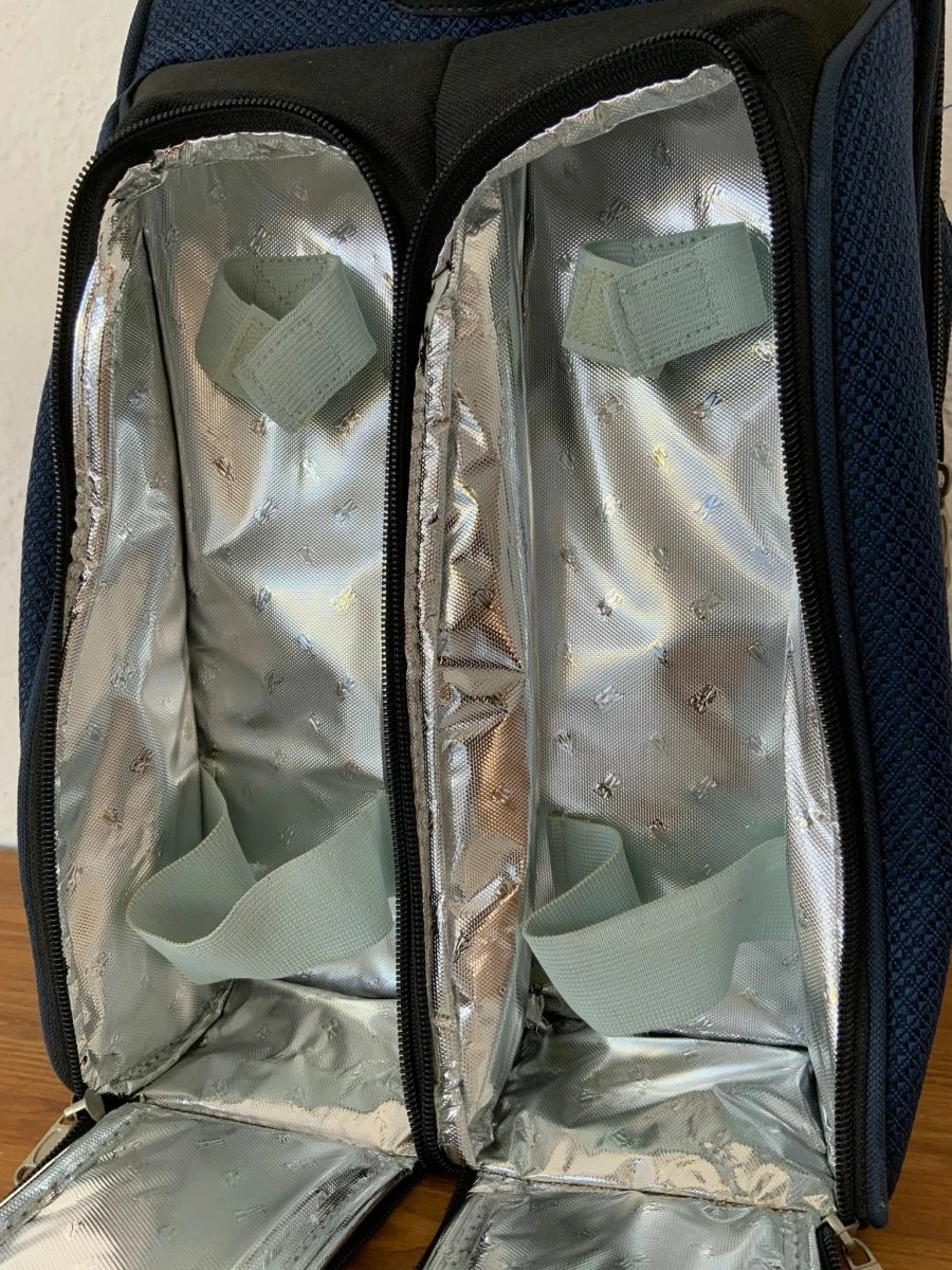 2. Μεσαίο ισοθερμικό τμήμα για τα τρόφιμα, τάπερ κλπ. Κλείνει με διπλό φερμουάρ.