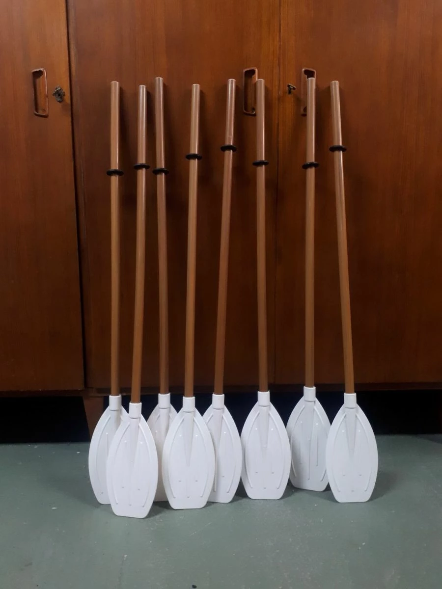 5 ευρώ τό ζευγάρι.Πλαστικά κουπιά καινούργια Ιταλικά όλα μαζί 15 ευρώ.Μήκος 120 εκατοστά καί πλάτος κουπιού 14 εκ.