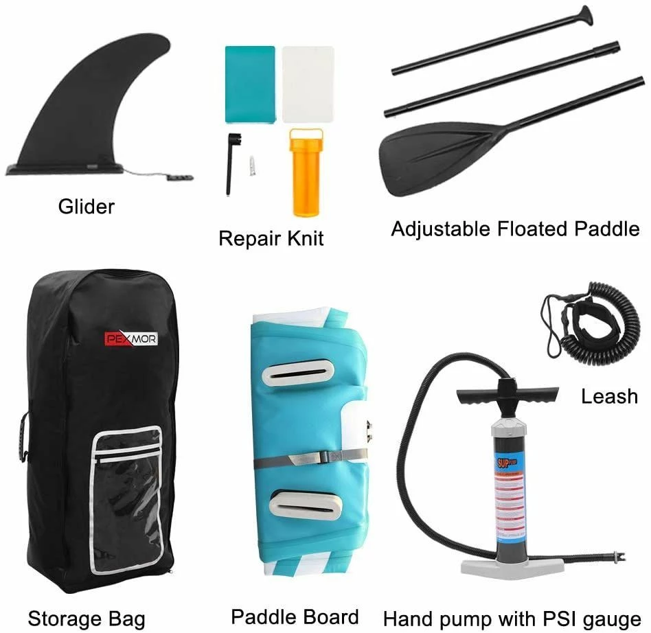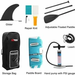 Περιέχει, κιτ επισκευης, ρυθμιζόμενο κουπί αλουμινίου 3 μερών, σάκο μεταφοράς με φερμουάρ, λουρί αστραγάλου και αντλία αέρος διπλής ενέργειας Liquid Air V1
