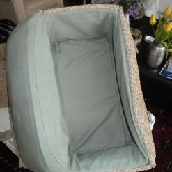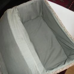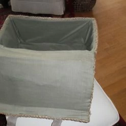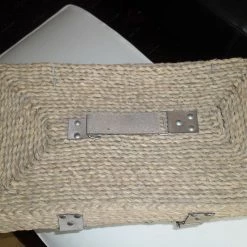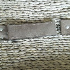 Από πλεκτό μπαμπού με δερμάτινες λεπτομέρειες, εσωτερικά πολύ προσεγμένα από πράσινο βαμβακερό ύφασμα. Μέγεθος μεγάλης 55 χ 30εκ, ύψος 28.