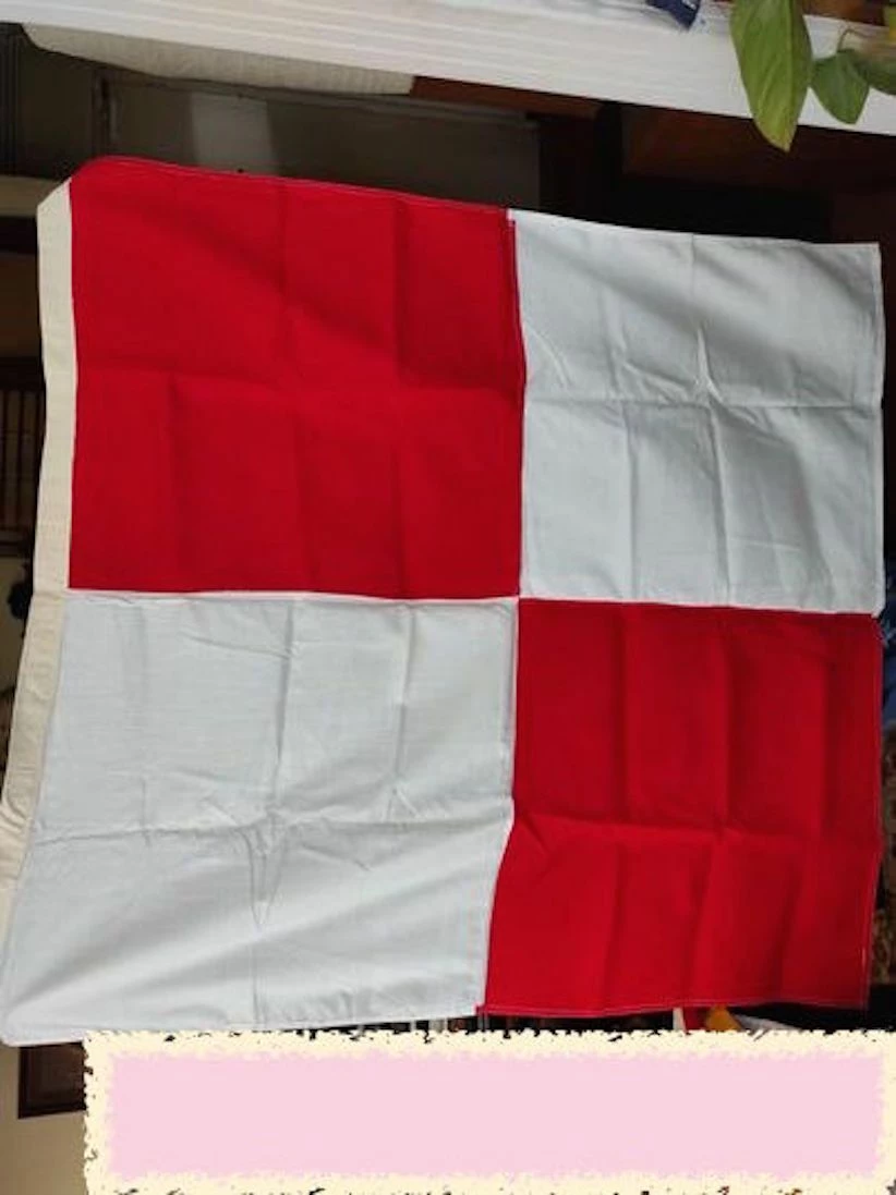 Σημαίες ιστιοπλοιας -15 σημαιες . Διαστασεις 1.50 Χ 1.55 εκατοστα απο καραβοναπο. Ειναι ολες σε αριστη κατασταση!! Τις διαθετω μονο ελες μαζι.Βαρος για ολες μαζι 6 κιλα.
