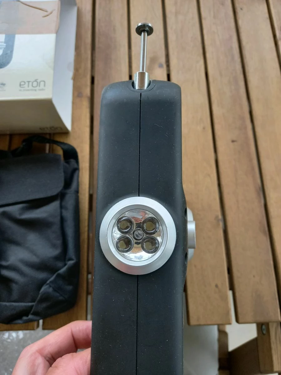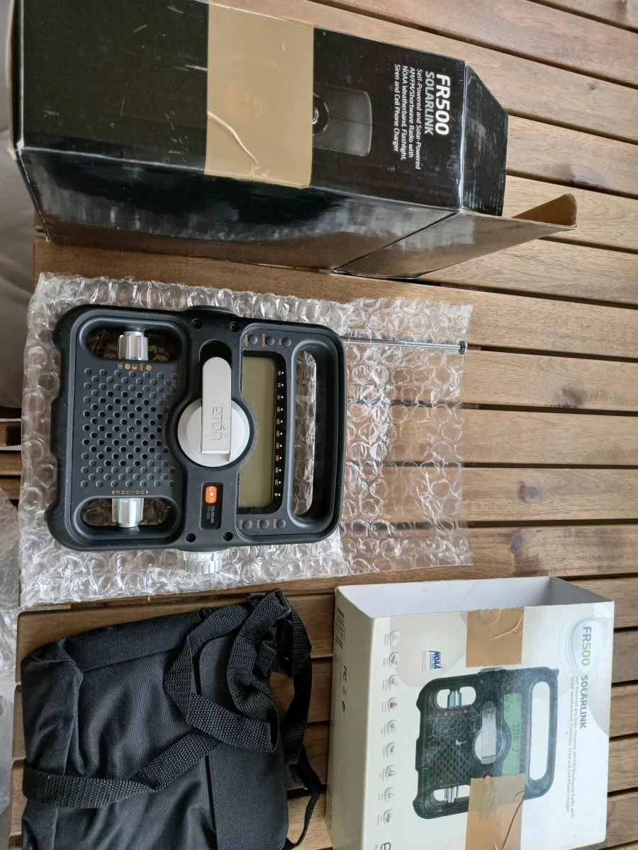 Ηλιακός φορτιστής κινητών τηλεφώνων και συσκευών. Φακός, ραδιόφωνο, σειρήνα και άλλες χρήσεις. Λειτουργία με φωτοβολταϊκό και μανιβέλα.