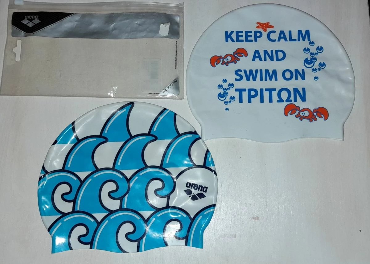 Σκουφάκια κολύμβησης 2 τεμάχια. Αφόρετα. Τιμή 7€ τα δύο.