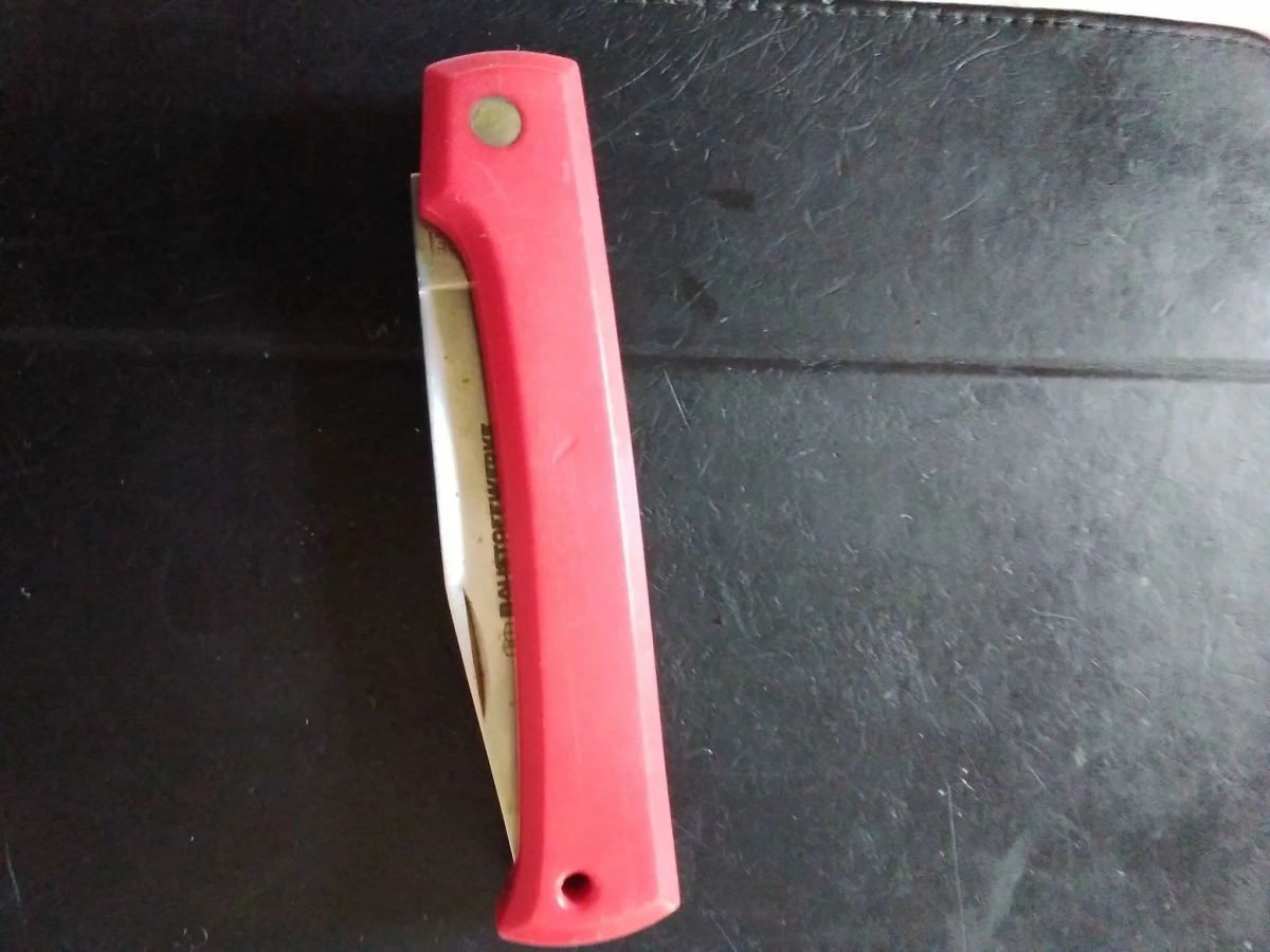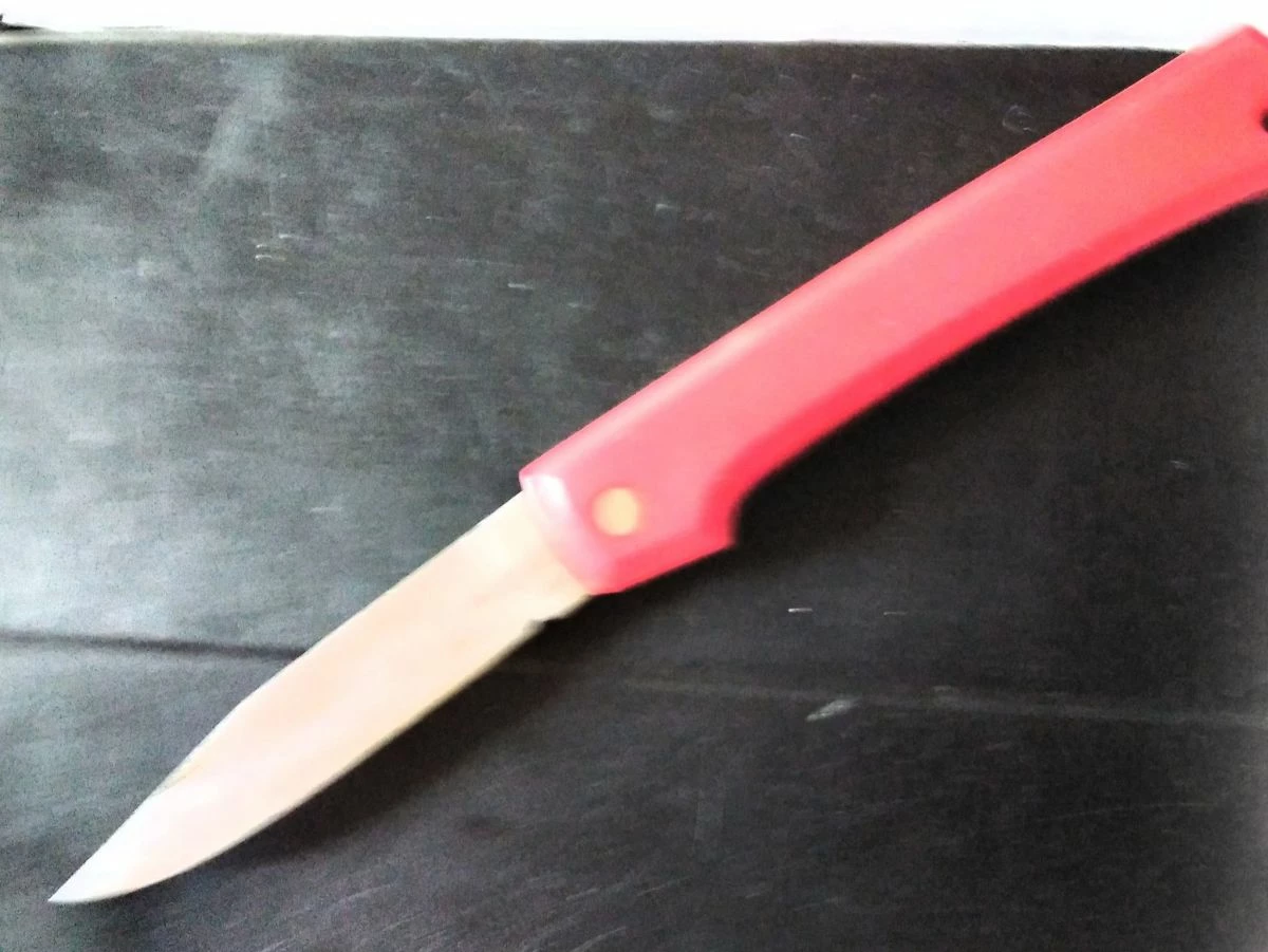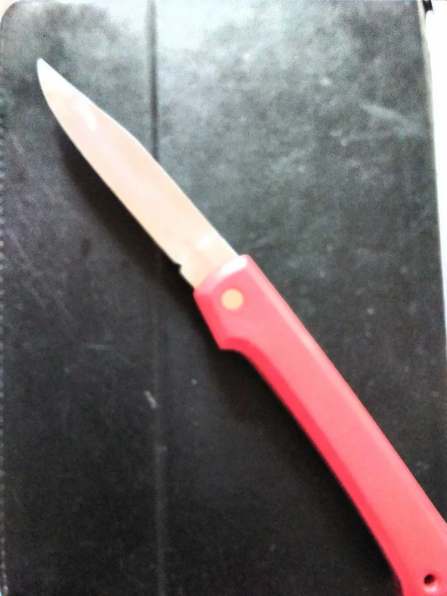 Ένας σουγιάς με κόκκινη πλαστική λαβή
