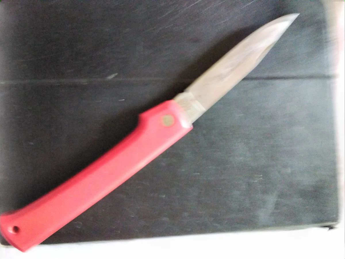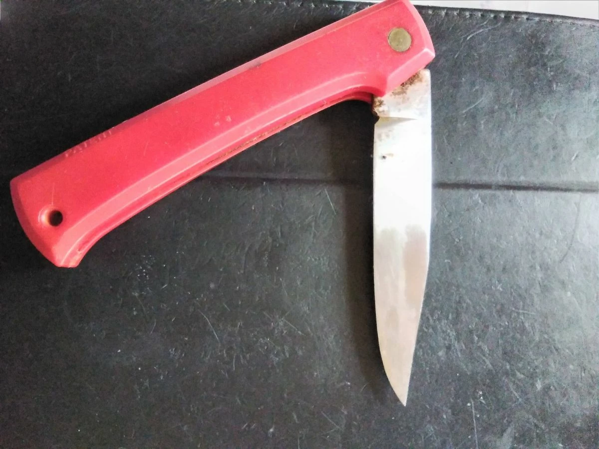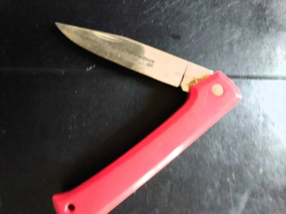 Ένας σουγιάς με κόκκινη πλαστική λαβή