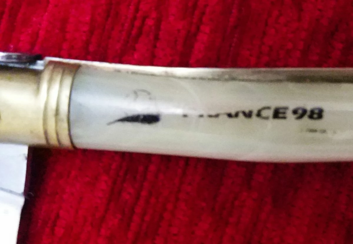 Σουγιάς συλλεκτικός με την σφραγίδα του παγκόσμιου κυπέλλου ποδοσφαίρου του France 1998 Laguiole με την μπάλα ποδοσφαίρου στην λεπτομέρεια στο κλείσιμό του…