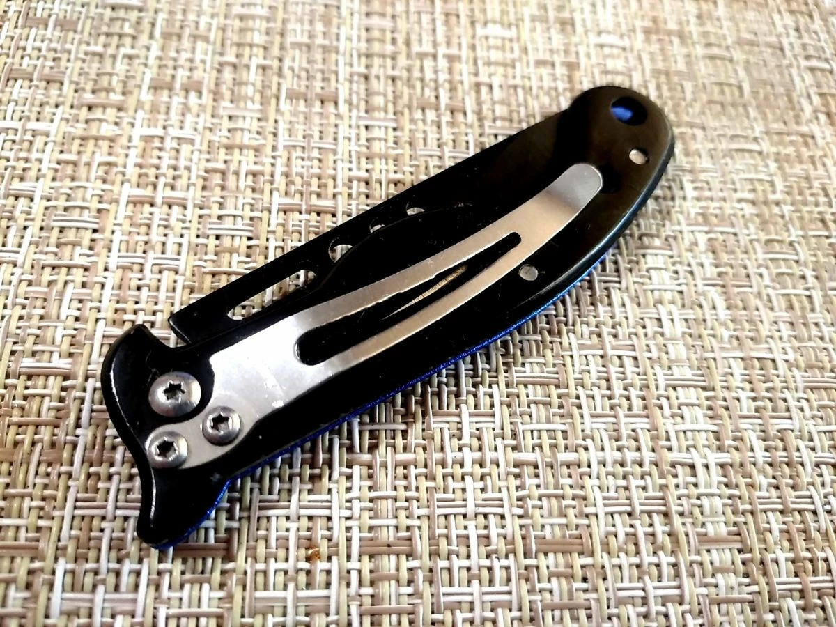 Σουγιάς σε μπλε χρώμα, εξοπλισμένο με κλιπ ζώνης.