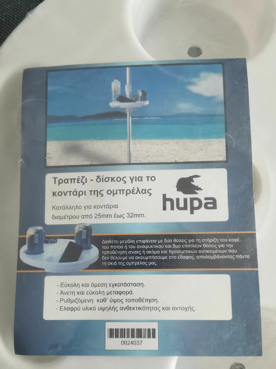 Πρακτικό τραπεζάκι Hupa που στηρίζεται στο κοντάρι της ομπρέλας