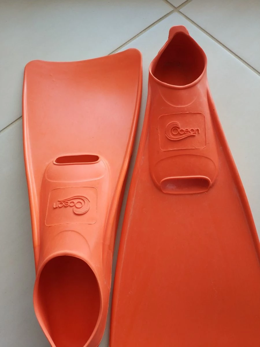Βατραχοπέδιλα Ocean Καουτσούκ Πορτοκαλί Νο 34-35 (USA 1-3 UK 1-3) για κολυμβητήριο. Σχεδόν αφόρετα. Κατασκευασμένα από καουτσούκ (μαλακό υλικό). Δεν τραυματίζει το πόδι και είναι εύκολα στο να τα φορέσετε.