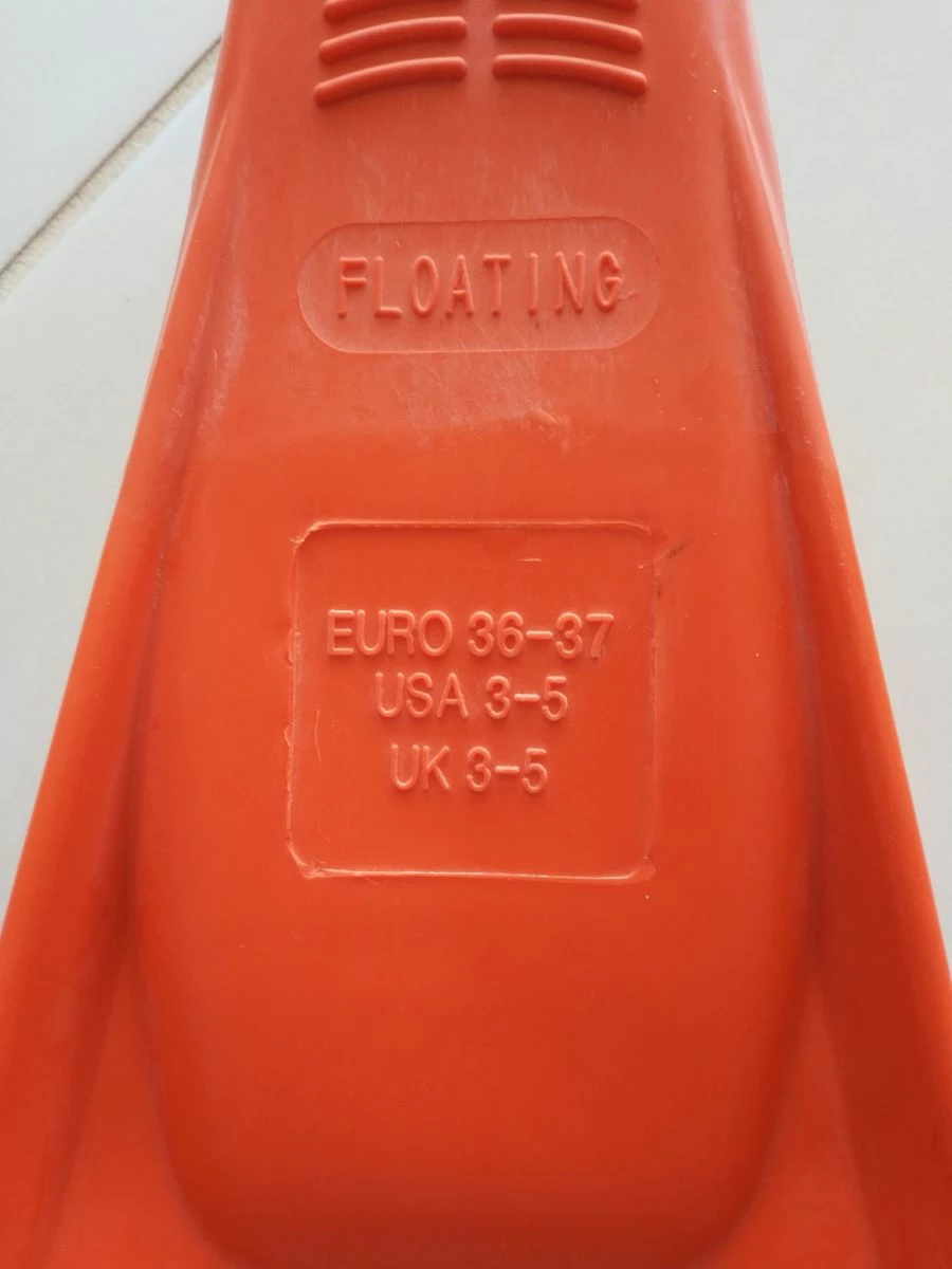 Βατραχοπέδιλα Ocean Καουτσούκ Πορτοκαλί Νο 36-37 (USA 3-5 UK 3-5) για κολυμβητήριο. Κατασκευασμένα από καουτσούκ (μαλακό υλικό). Δεν τραυματίζει το πόδι και είναι εύκολα στο να τα φορέσετε.
